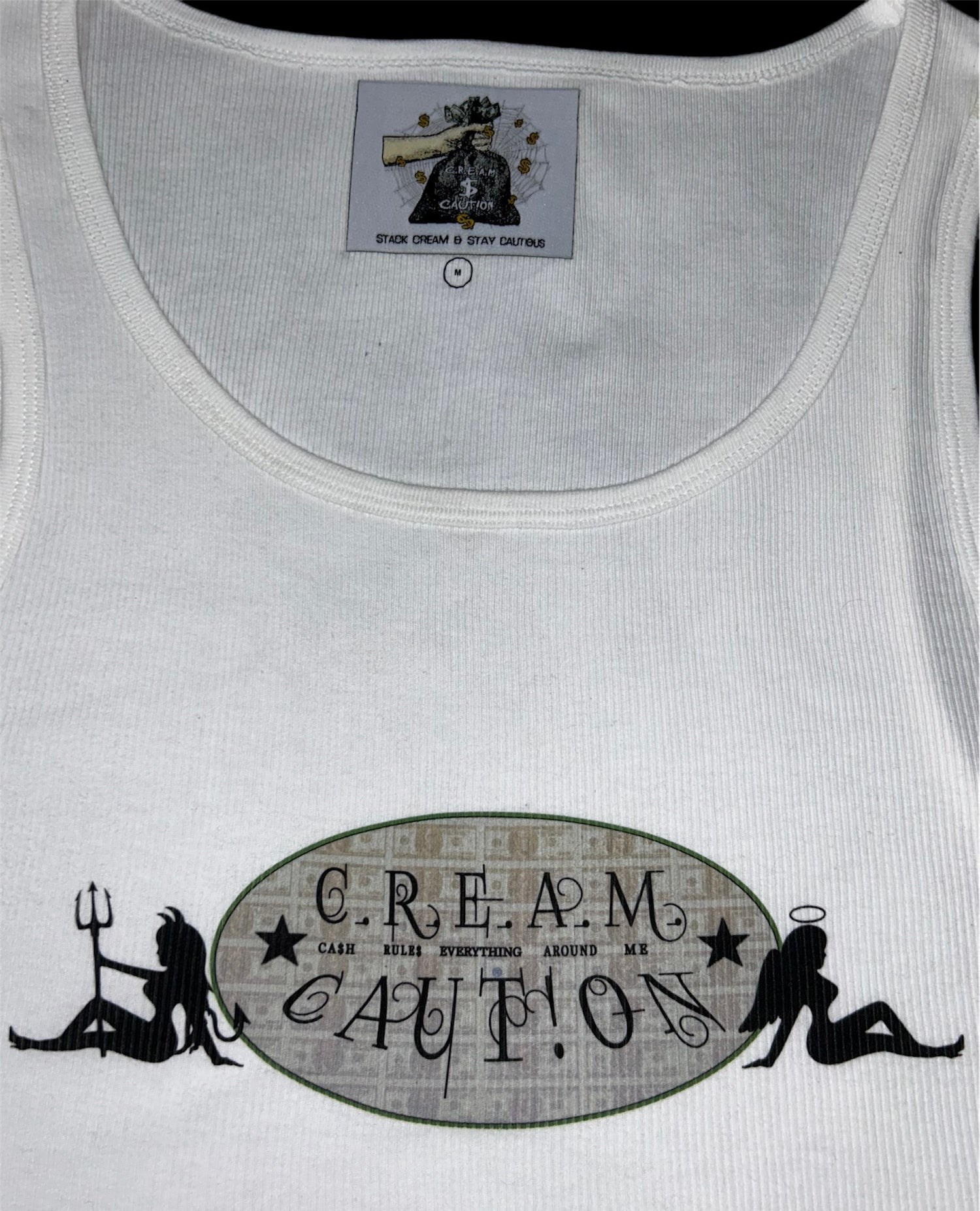 Feel like money throughout any season with this Get Money Tank Top from C.R.E.A.M. CAUT!ON in your wardrobe. Made from a 100% cotton fabric for comfort, this tank top features a classic scoop neckline that makes for an easy layering option under your jackets, or T-shirts or button downs, or you can wear it alone during the warmer temps. Perfect for pairing with any bottoms, from shorts to joggers to jeans, this ribbed tank top set makes a great wardrobe essential that keeps you looking sleek while helping you maintain breathable comfort throughout your day